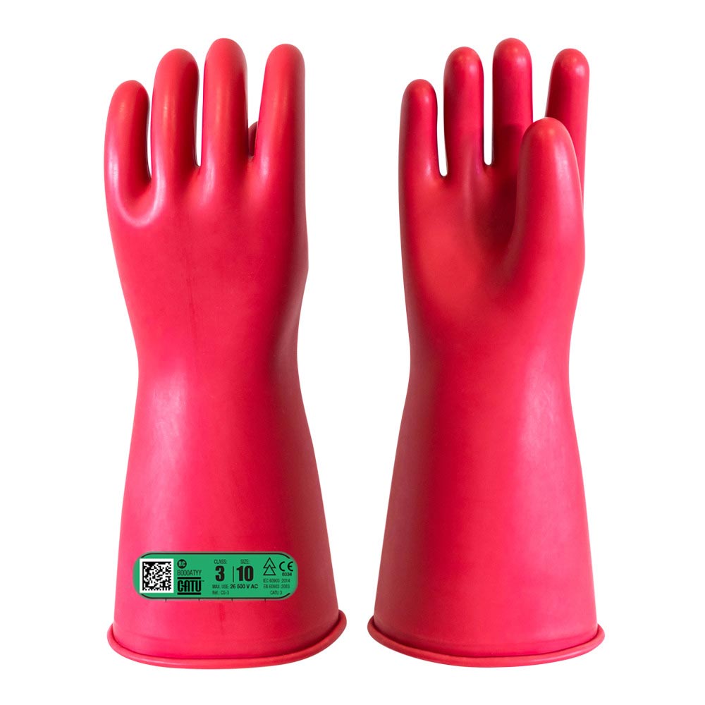 CATU Electrical Insulated Gloves Class 3 26.5kV are designed for electrical protection and certified to IEC 60903 standards. Made from high-quality natural rubber, these gloves ensure optimal comfort, flexibility, and safety during low-voltage electrical work. Essential PPE for electricians and maintenance personnel working in energised environments.